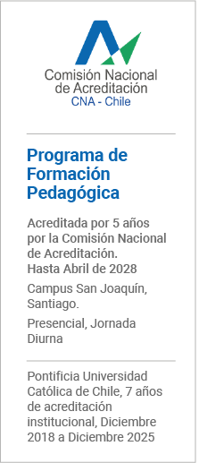 El plan de estudios del Programa de Formación Pedagógica (PFP) pone énfasis en la formación docente y articula la reconfiguración del conocimiento de la disciplina de su licenciatura, de tal manera de poder trabajar también interdisciplinariamente y cumplir con los desafíos que la educación actual está demandando. Además del conocimiento disciplinar y su didáctica, se integran conocimientos pedagógicos sobre evaluación, currículum, aprendizaje y desarrollo, ética, gestión de ambientes de aprendizaje, educación y sociedad y metodologías de investigación aplicadas. Todas estas oportunidades se articulan con las experiencias de prácticas en terreno con distintos niveles de complejidad desde el inicio de la formación.