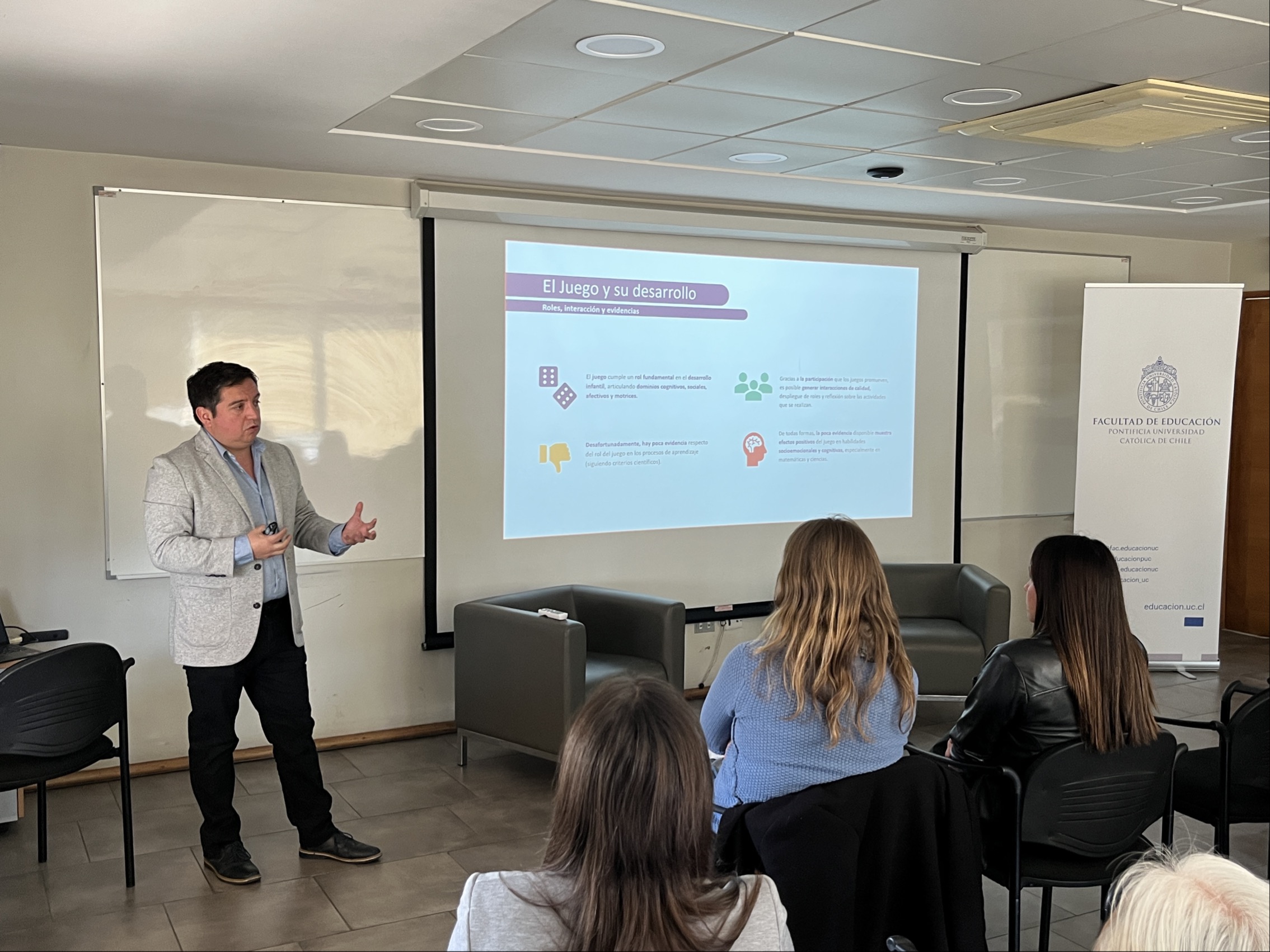 La presentación, que se nutrió de los resultados de dos proyectos Fondecyt y Fondef en los que participó y lideró el académico, comenzó desde un consenso ampliamente compartido: el juego cumple un rol clave en el desarrollo infantil, al articular distintos dominios cognitivos, sociales y afectivos.