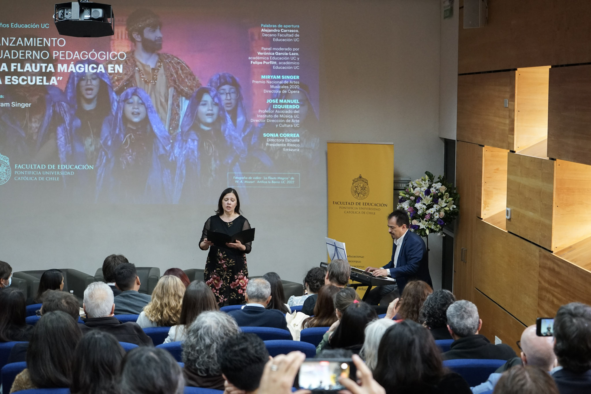 En el auditorio de la Facultad de Educación UC se presentó el pasado miércoles 15 de octubre el cuaderno pedagógico del proyecto “La Flauta Mágica en la escuela”, elaborado por la arquitecta, cantante de ópera y Premio Nacional de Artes Musicales 2020, Miryam Singer. El cuaderno fue escrito bajo el alero de un FONDART del Ministerio de las Culturas, las Artes y el Patrimonio, yse compone de dos objetivos: montar una adaptación de la ópera “La Flauta Mágica” de Mozart en un contexto escolar; y hacer de la ópera un proyecto de aprendizaje con objetivos transversales en la educación básica.