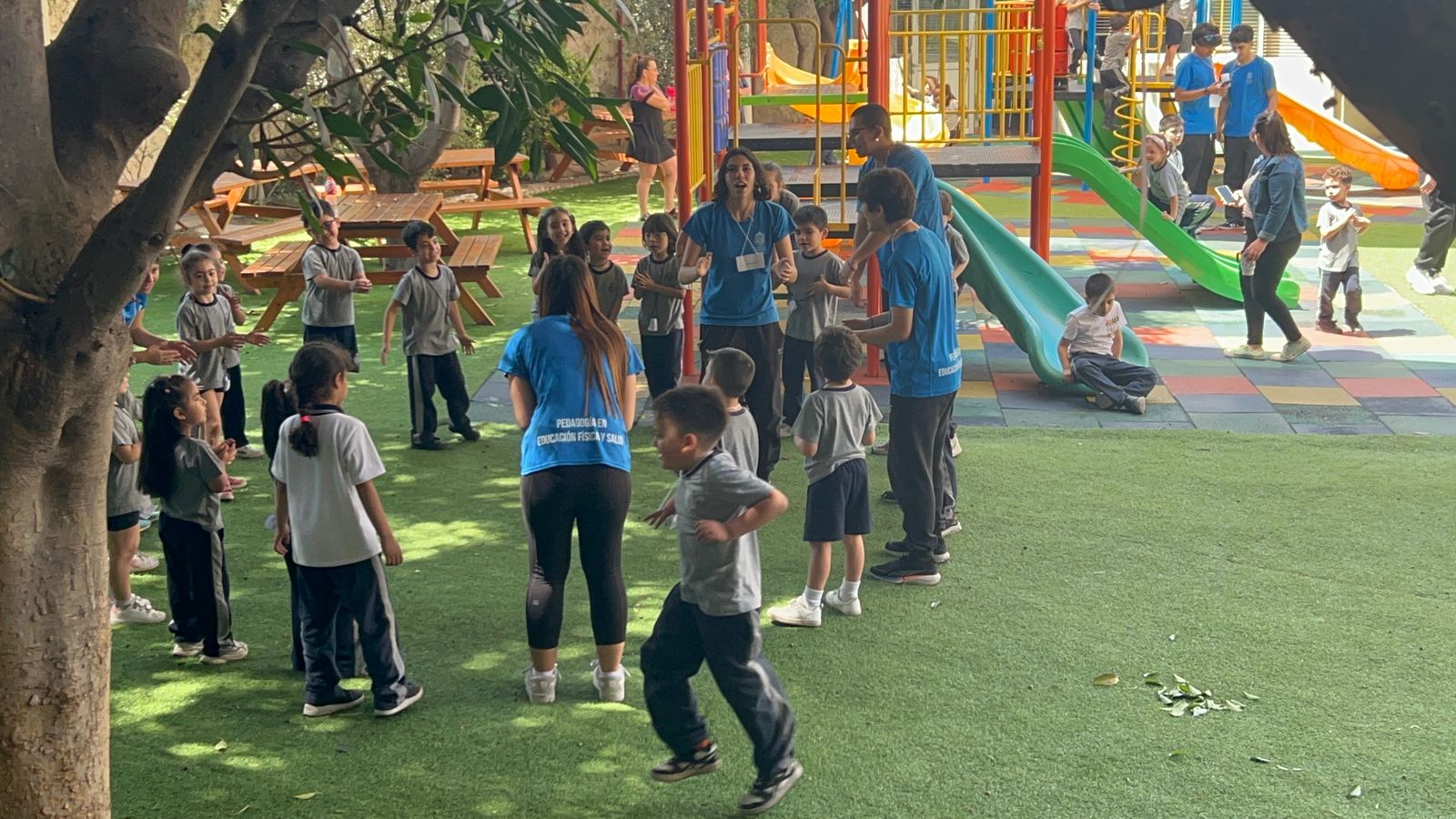 Las y los estudiantes de Práctica 1 de la carrera de Pedagogía en Educación Física y Salud participaron el pasado 15 de noviembre en la Feria Motriz del colegio Divina Pastora de Ñuñoa. Allí realizaron actividades dirigidas a más de 900 alumnos desde prebásica hasta enseñanza media, con una gran variedad de juegos motrices, los que fueron planificados en contexto de su primera práctica.