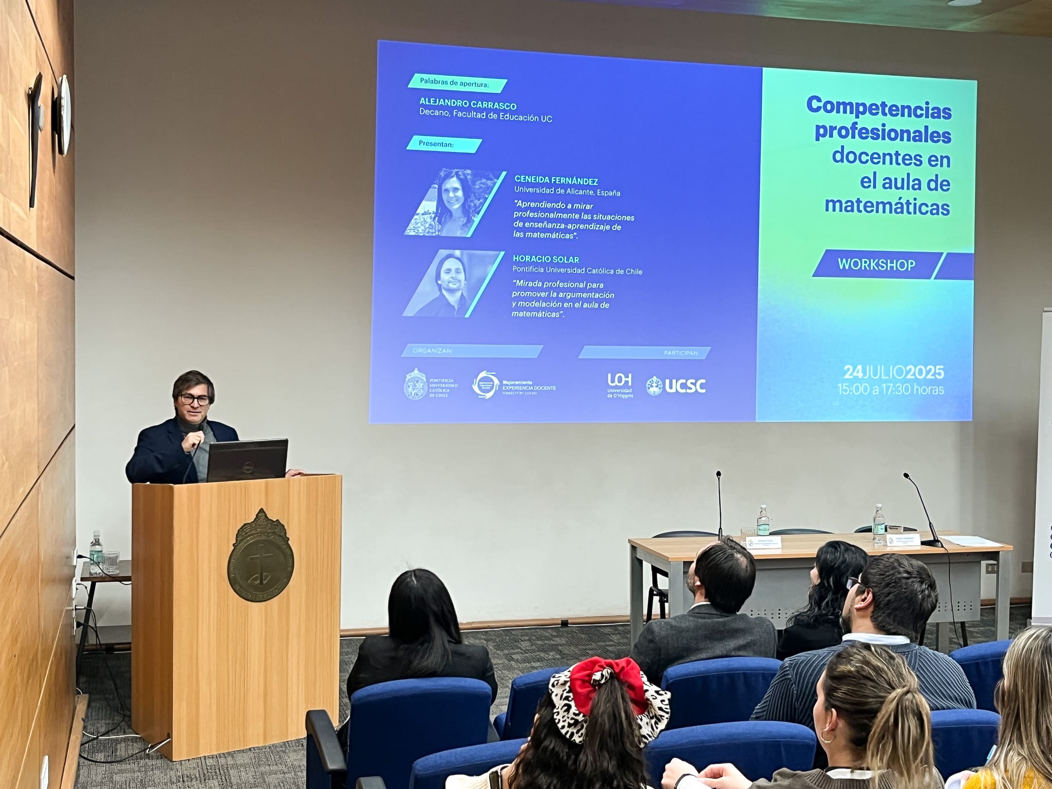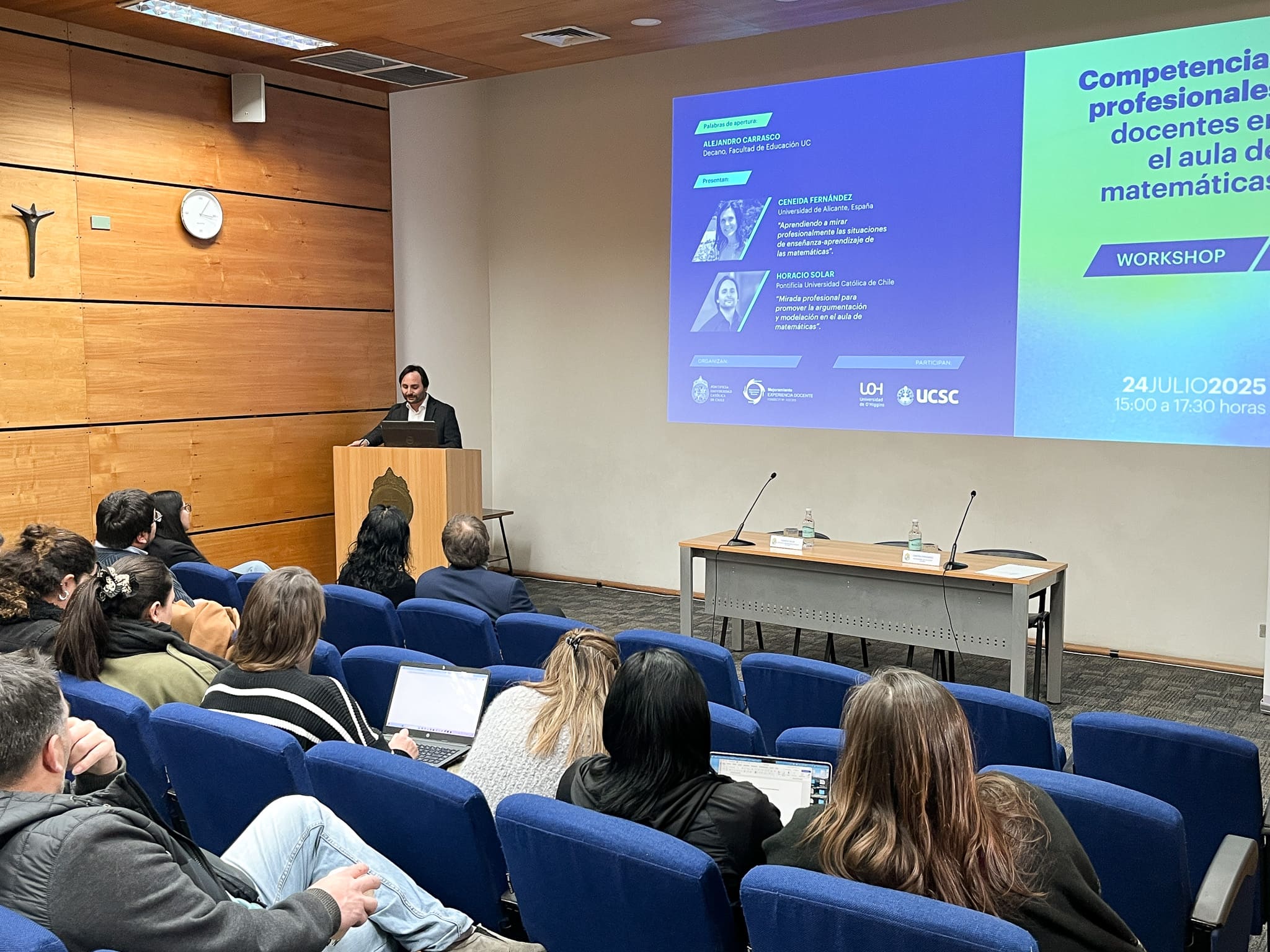 El evento se enmarca en el proyecto FONDECYT N° 1231033 «Noticing docente para promover competencias profesionales en la enseñanza y aprendizaje del álgebra escolar: Un estudio con profesores principiantes y futuros profesores», donde el académico de Educación UC Horacio Solar, a cargo del evento, es investigador responsable. También forma parte del proyecto la académica de Educación UC Florencia Gómez.
