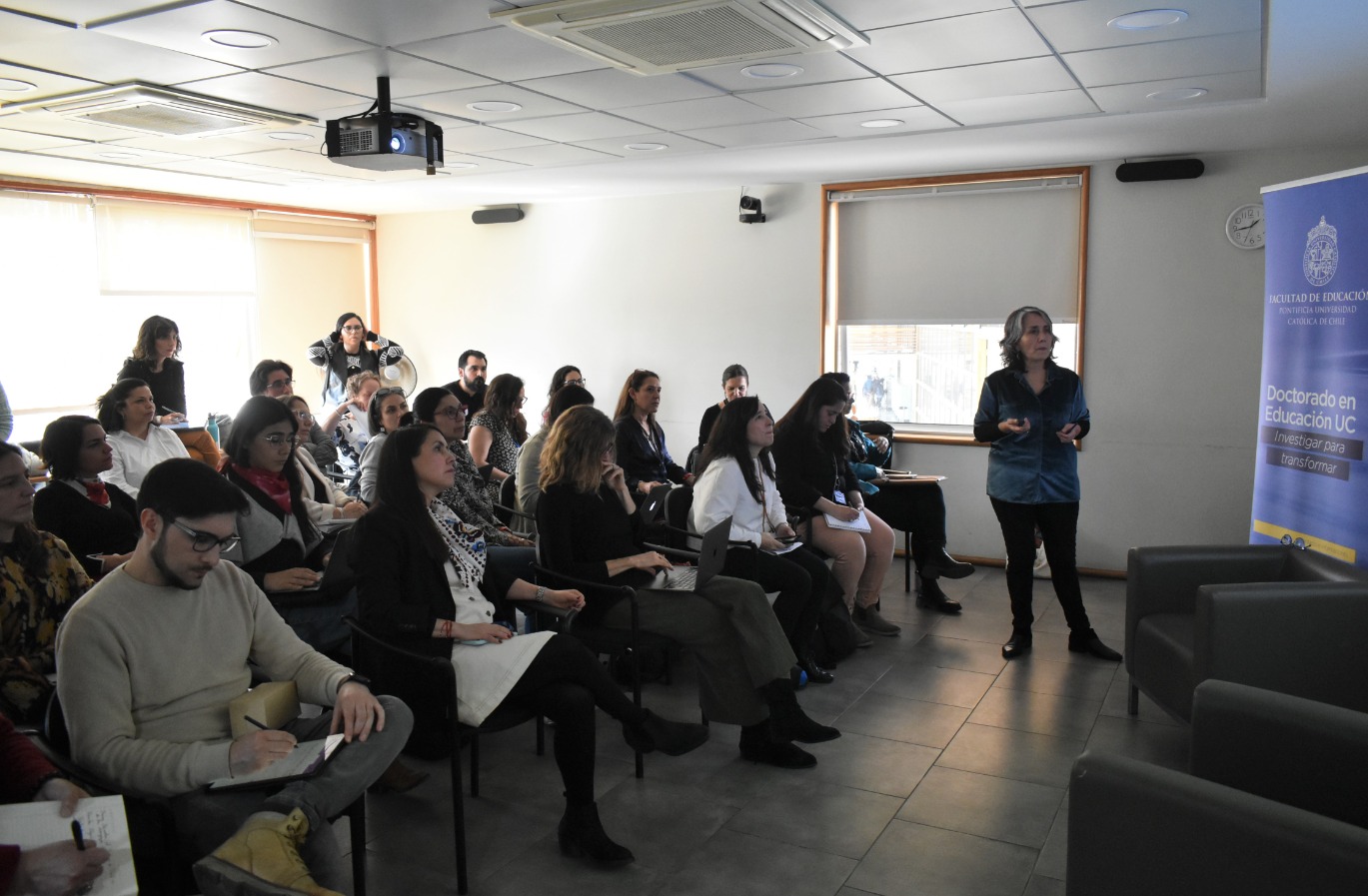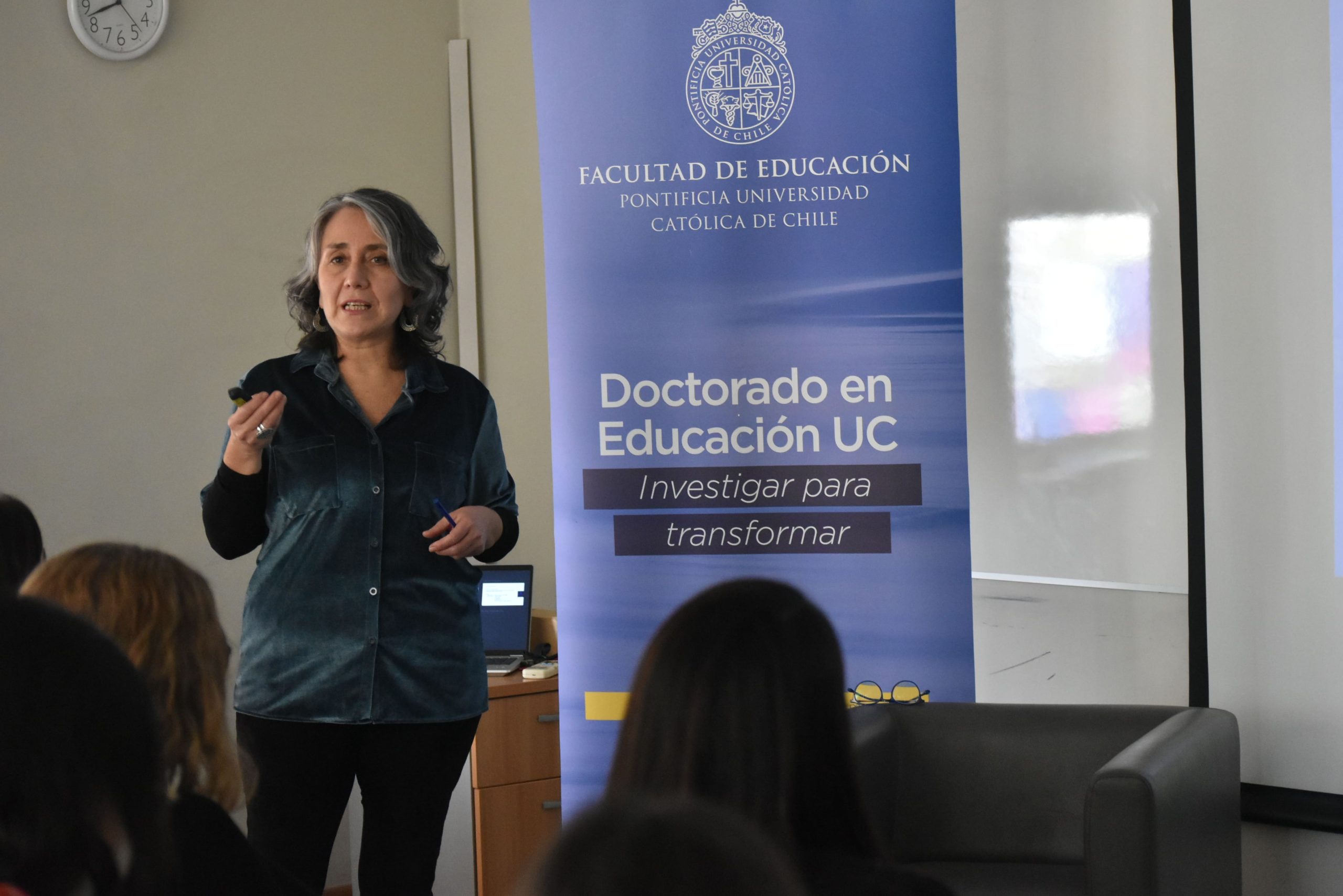 La presentación fue comentada por la académica de la Facultad de Educación UC, Florencia Gómez, quien aportó una mirada crítica y reflexiva sobre los desafíos que enfrenta el sistema de prácticas, y la importancia de avanzar hacia una mayor articulación entre teoría y práctica en la formación docente.