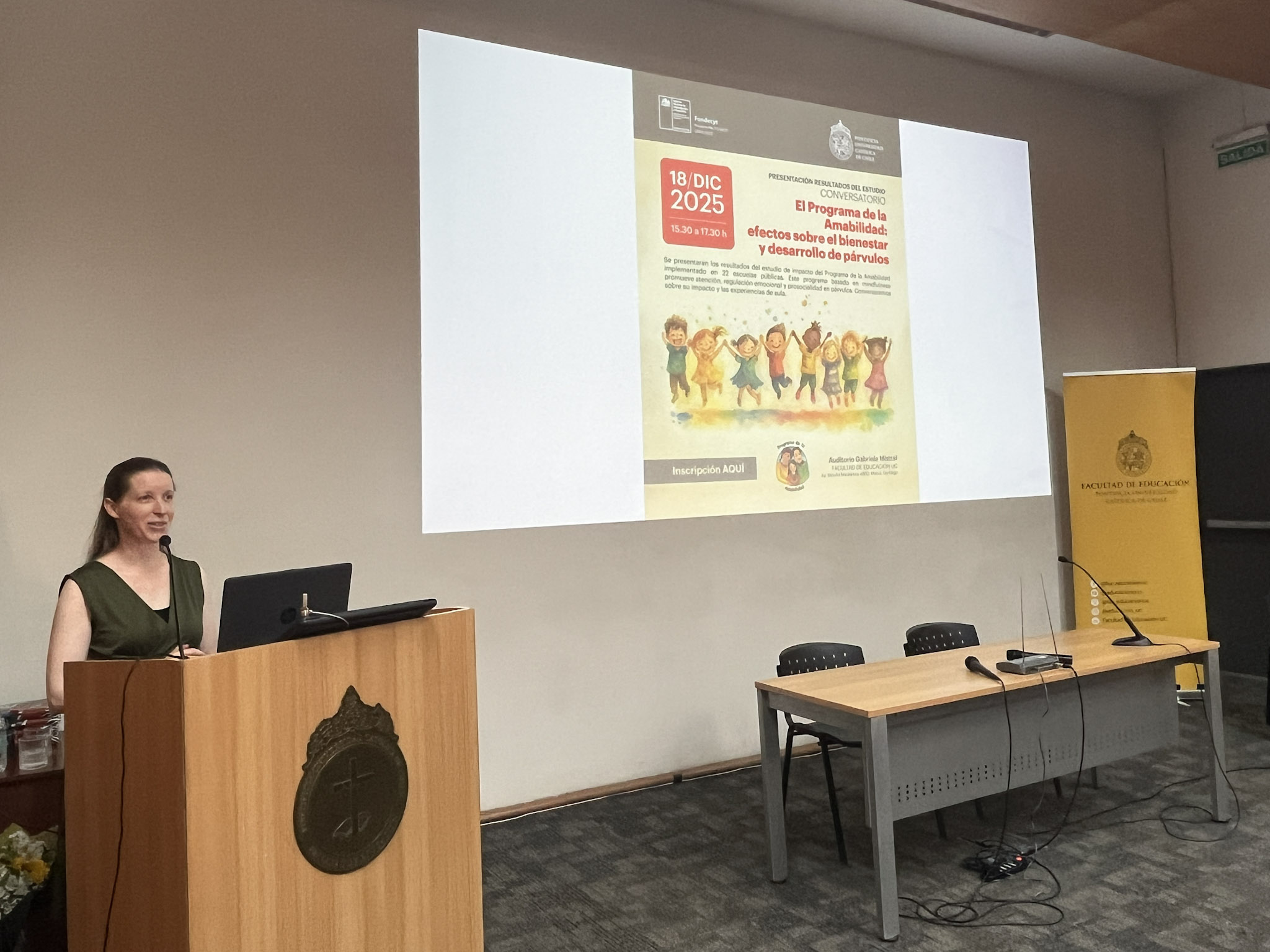 El jueves 18 de diciembre de 2025 se realizó el evento de cierre del proyecto Fondecyt “Evaluación de impacto del Programa de la Amabilidad en aulas preescolares en contextos de alta vulnerabilidad”, investigación dirigida por Regina Lohndorf, académica de la Facultad de Educación UC. El estudio evaluó los efectos de un programa basado en mindfulness en párvulos de nivel transición de escuelas públicas.