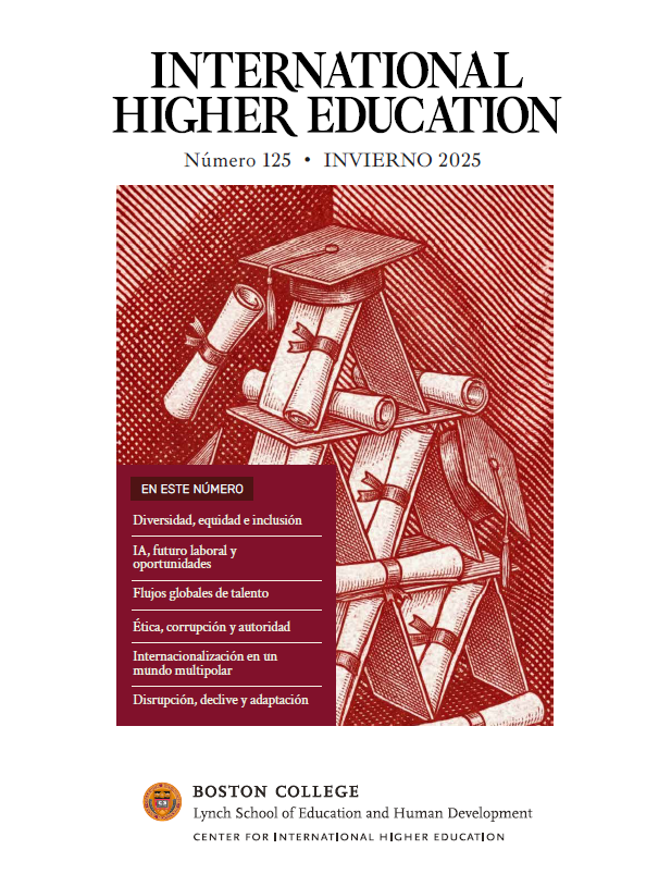 La revista International Higher Education es una publicación trimestral del Centro para la Educación Superior Internacional de Boston College. En ella se publican artículos e informes que, desde una perspectiva global y comparada, buscan iluminar políticas y prácticas en Educación Superior. Como reflejo de la misión de la Facultad de Educación UC para incentivar la colaboración académica internacional y la difusión de conocimiento, editamos su versión en español, disponible para su descarga gratuita.